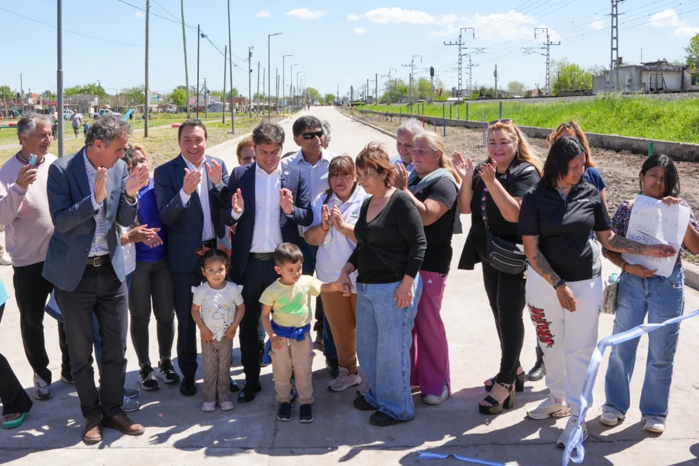 El jefe comunal Andrés Watson junto al gobernador Axel Kicillof, oficializó esta mañana la apertura al tránsito de 20 cuadras pavimentadas sobre Diagonal Los Tilos y arterias vehiculares del entorno a la estación férrea “Dante Ardigó”.