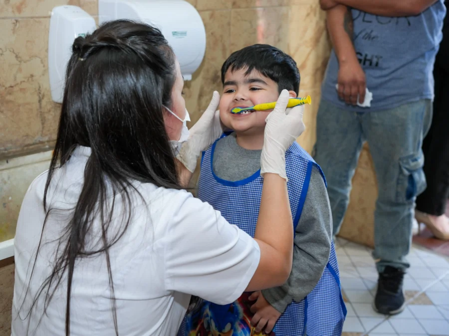 Los niños del Jardín Municipal Nº12 de Villa Aurora protagonizaron una jornada de sanidad bucal, coordinada por profesionales de la Comuna, este jueves por la mañana en la institución emplazada en la intersección de calle Pizzurno con Nuestras Malvinas.