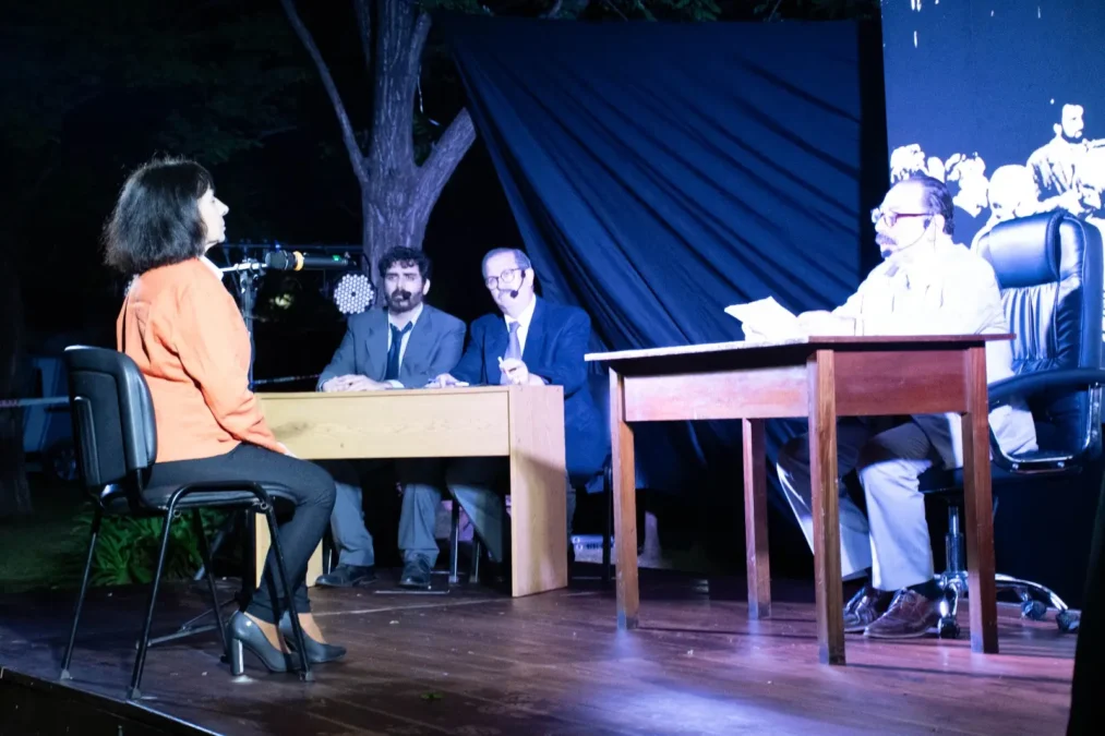 El pasado viernes, la Plaza de la Democracia se transformó en un espacio de reflexión y homenaje con la presentación de “El juicio a la muerte”, una potente representación inspirada en el Juicio a las Juntas Militares y en las luchas del pueblo argentino frente al terror de la dictadura.
