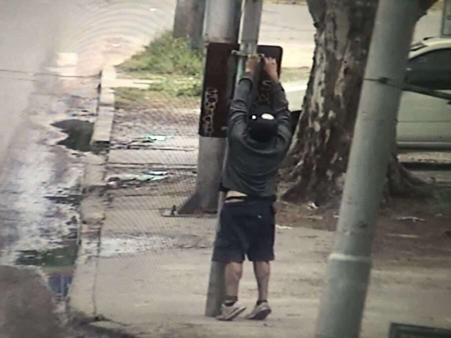 Tras visualizar a un sujeto que ocasionaba destrozos en cartelería de la vía pública en la zona céntrica del distrito, los operadores del Centro de Monitoreo Municipal alertaron a la Policía.