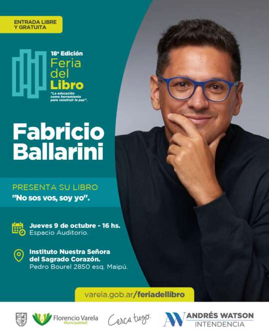 Fabricio Ballarini, biólogo egresado de la Universidad de Buenos Aires, presentará su última publicación “Nos sos vos, soy yo” en el evento literario varelense el jueves 9 de octubre a las 16 hs. en el Instituto “Nuestra Señora del Sagrado Corazón”, calle Bourel Nº2850.