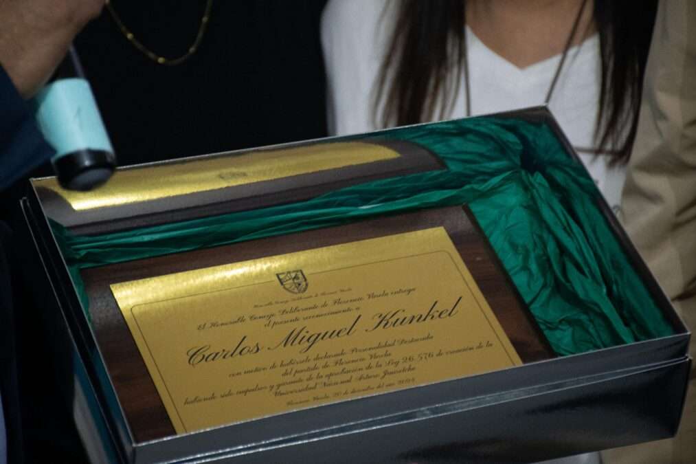 El homenaje, aprobado por unanimidad, destacó la extensa trayectoria de Kunkel, su compromiso con la democracia y su papel decisivo en la gestión de proyectos trascendentales para el desarrollo de Florencio Varela, entre ellos la creación de la Universidad Nacional Arturo Jauretche, impulsada junto al entonces intendente Julio Pereyra, hoy diputado nacional.