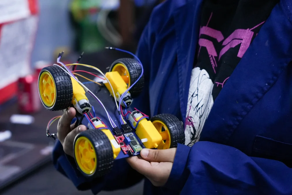 Clara Palavecino junto a Uriel Base de Electrónica, presentaron «seguidores de línea: un auto programado con sensores que detectaban el camino y completaban un circuito». «Fue placentero ver el resultado de un trabajo que iniciamos desde cero con tanto esfuerzo», expresaron.