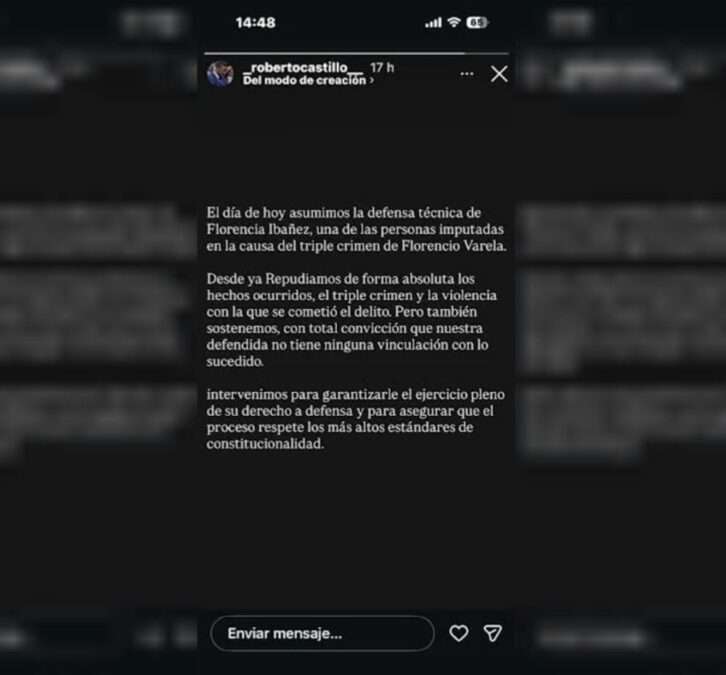 Según supo NA y en base al comunicado oficial, el letrado lo confirmó a través de redes sociales: “El día de hoy asumimos la defensa técnica de Florencia Ibañez, una de las personas imputadas en la causa del triple crimen de Florencio Varela”.