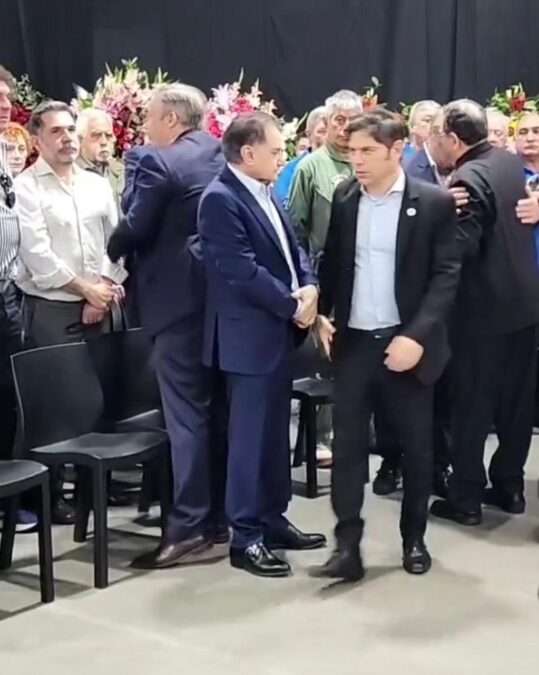 Tras la palabra de Kicillof, hicieron su ingreso al salón donde se lleva adelante el velorio, el presidente del Partido Justicialista, Máximo Kirchner, y la intendenta de Quilmes, Mayra Mendoza. Ambos dirigentes se ubicaron en una segunda fila detrás de Kicillof y los intendentes que acompañaron al mandatario. Testigos de ese momento, contaron a Infobae que hubo un saludo protocolar y de cortesía entre los dirigentes sin charla; lo mismo que con Larroque y el resto de los asistentes.