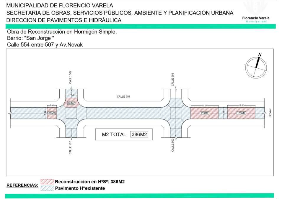 Financiados con fondos comunales, los trabajos prevén la renovación de 386 m² de asfalto mediante la colocación de hormigón simple, con el objetivo de optimizar los accesos al Jardín de Infantes Nº905, la Primaria Nº49 más Secundaria Nº45 y mejorar la circulación para residentes de la zona.