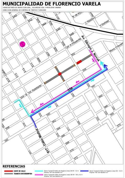 Debido a las labores, el tránsito quedará interrumpido y los desvíos serán por calle 558.