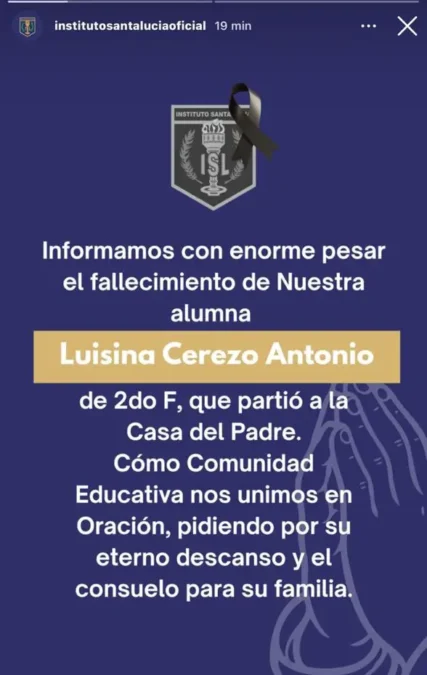 Asimismo la institución educativa varelense informó la triste noticia con enorme pesar.