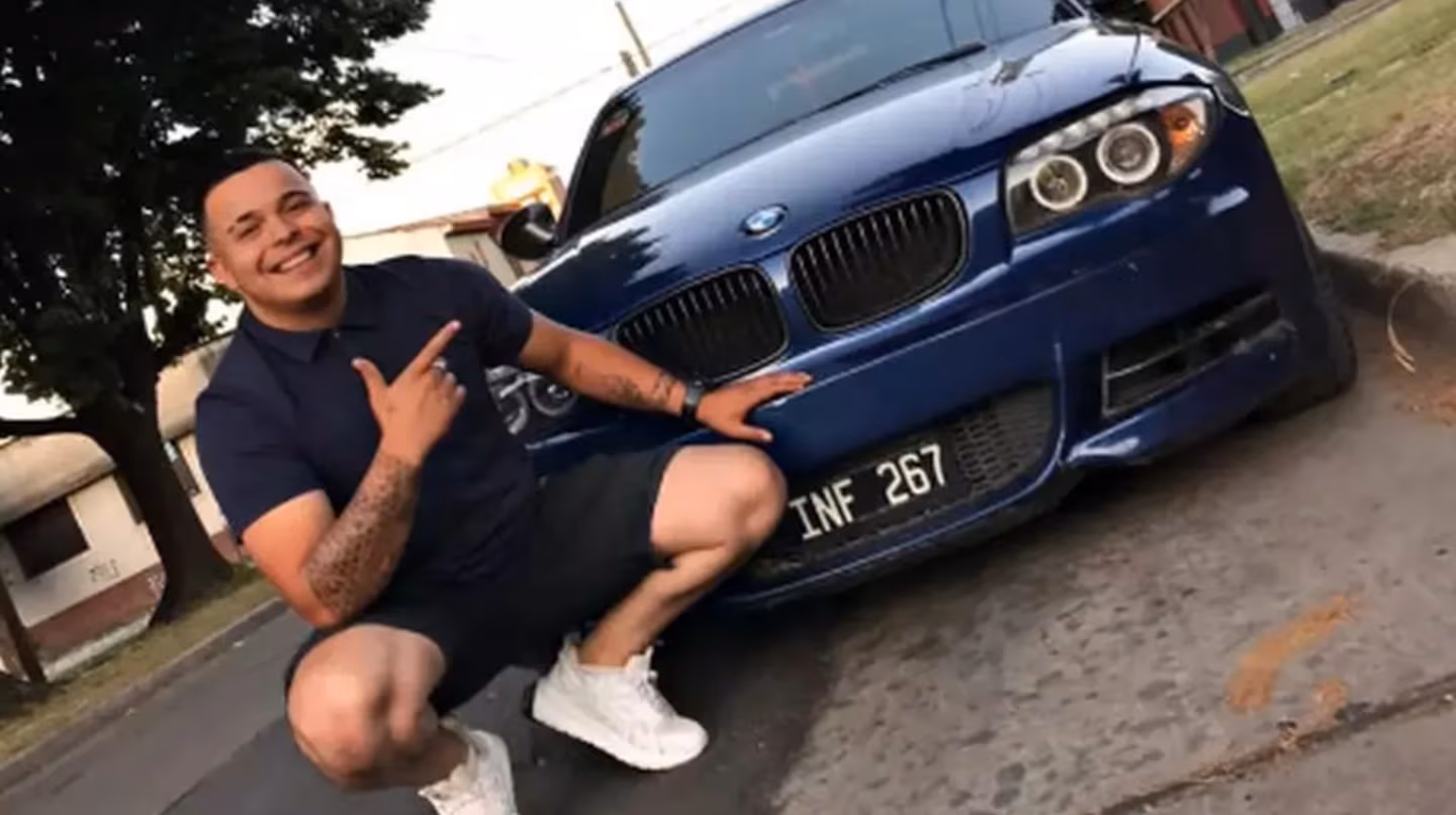 Lucas con su BMW azul en el que pasó a buscar a su amigo Lautaro en Florencio Varela.