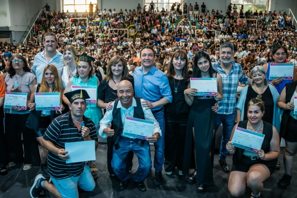 El titular del Ejecutivo local, Andrés Watson, felicitó a los 780 egresados de diversos establecimientos de nivel secundario para adultos el lunes por la tarde en el polideportivo “La Patriada”, ubicado en Avenida Novak esquina Bonn.
