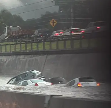 Se vivieron momentos de sumo dramatismo este martes en la concurrida autopista debido a las tormentas e inundaciones.