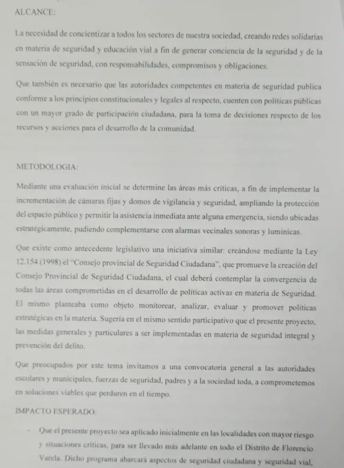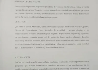 Recordó que el proyecto «Escuelas Seguras Varelenses» fue presentado en el Consejo Escolar, con el objetivo de que se implementen medidas de seguridad en las escuelas del distrito.