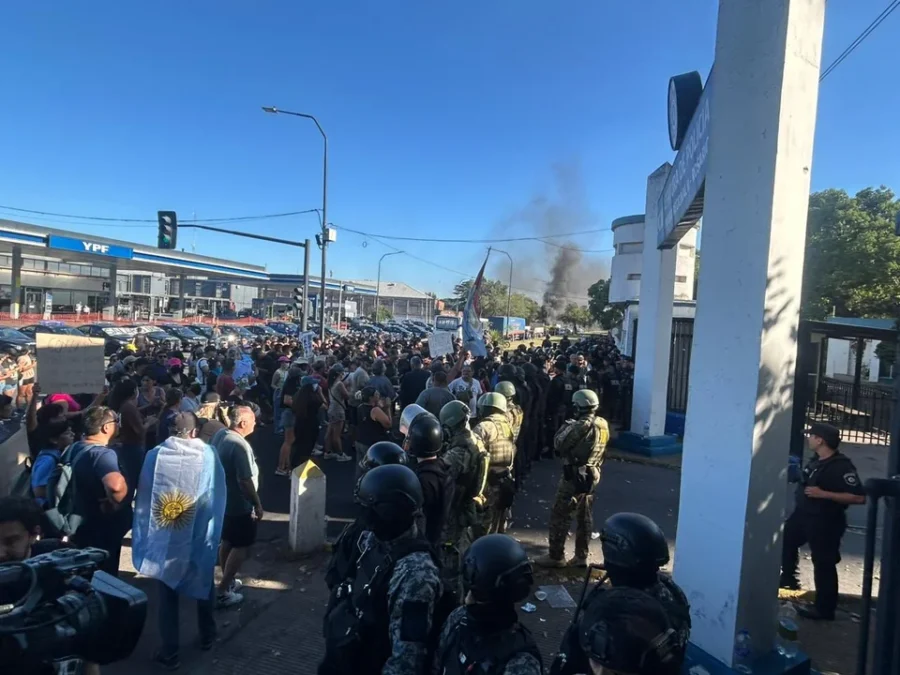 A su vez, los policías también se manifestaron durante la mañana de este martes frente a la Jefatura de la Unidad Regional II de Rosario, donde hubo quema de cubiertas sobre la avenida Ovidio Lagos.