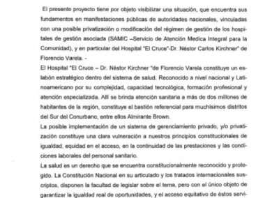 El proyecto completo de Cascallares que rechaza la privatización del Hospital de Florencio Varela