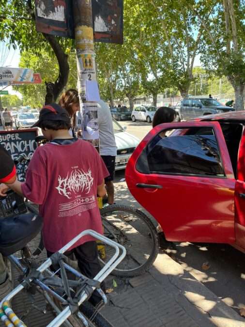 Crisis en el transporte público: vecinos viajando en autos particulares, debido al no funcionamiento de los colectivos locales durante la manaña de hoy, viernes. Parada de El Halcón, centro de Varela. Foto: La Colmena.