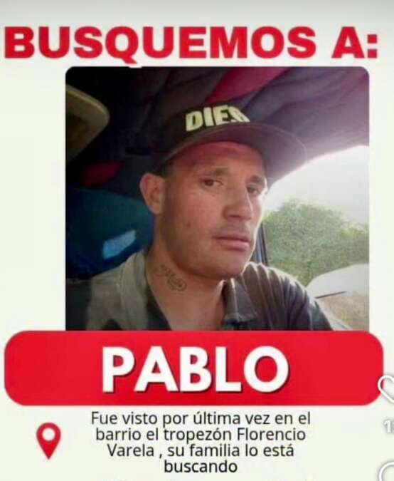 “Mi hermano Pablo está desaparecido desde hace más de 20 días y no sabemos nada de él. Es de Florencio Varela- La Capilla, Los Tronquitos 2, edad 31 años. La familia está destrozada, las nenas lo extrañan mucho y nosotros no podemos más de la angustia. Si alguien lo ha visto o sabe algo, por favor, por favor, comuníquense con el 911 o al 1158865628.Cualquier información es valiosa para nosotros. ¡Ayúdanos a encontrarlo, por favor!