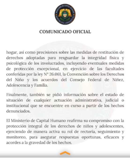 El comunicado del Ministerio de Capital Humano (X: Sandra Pettovello)