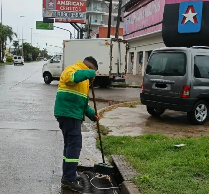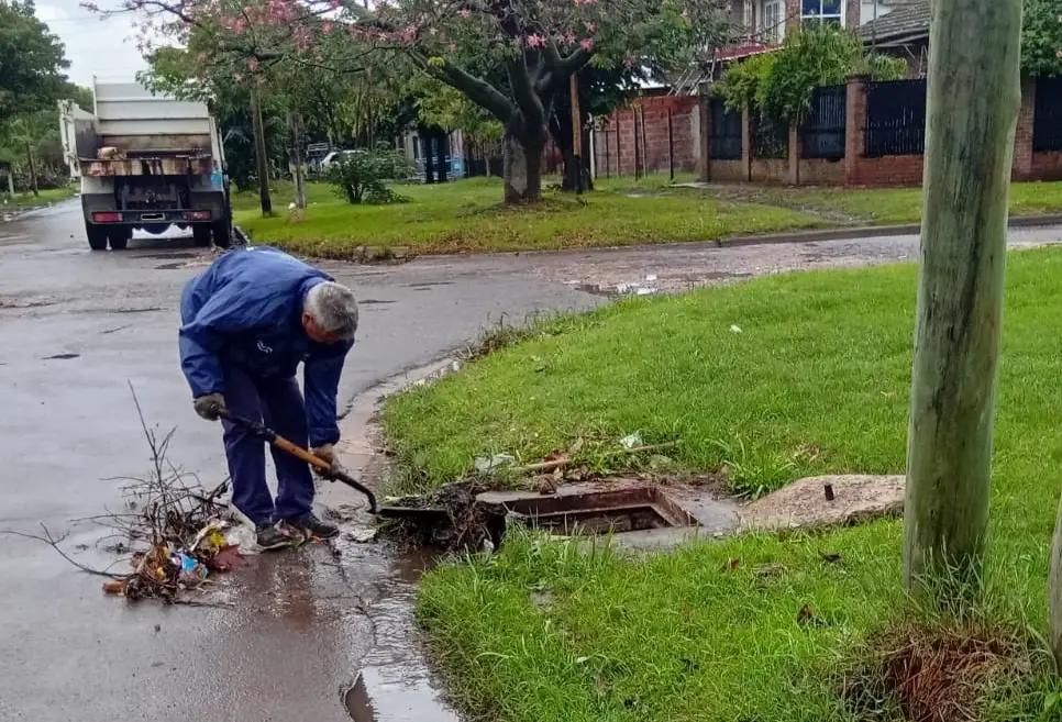 Ante las precipitaciones previstas durante la jornada, los operarios comunales efectúan limpieza de sumideros y retiran residuos para evitar anegamientos.