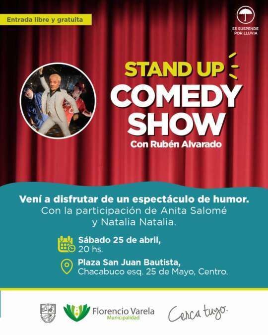 La Comuna programó un espectáculo unipersonal, abierto y gratuito, el sábado 25 de abril a las 20 hs. en la plaza San Juan Bautista, Chacabuco esquina 25 de Mayo, en la zona céntrica del distrito.